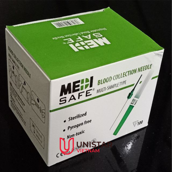Kim lấy máu chân không được làm bằng thép không gỉ và nhựa, mũi kim là cắt vát giúp giảm thiểu đau đớn khi đưa vào tĩnh mạch, nó được sử dụng cùng với ống lấy máu chân không để lấy máu, lấy mẫu và xét nghiệm trong phòng khám và bệnh viện.
